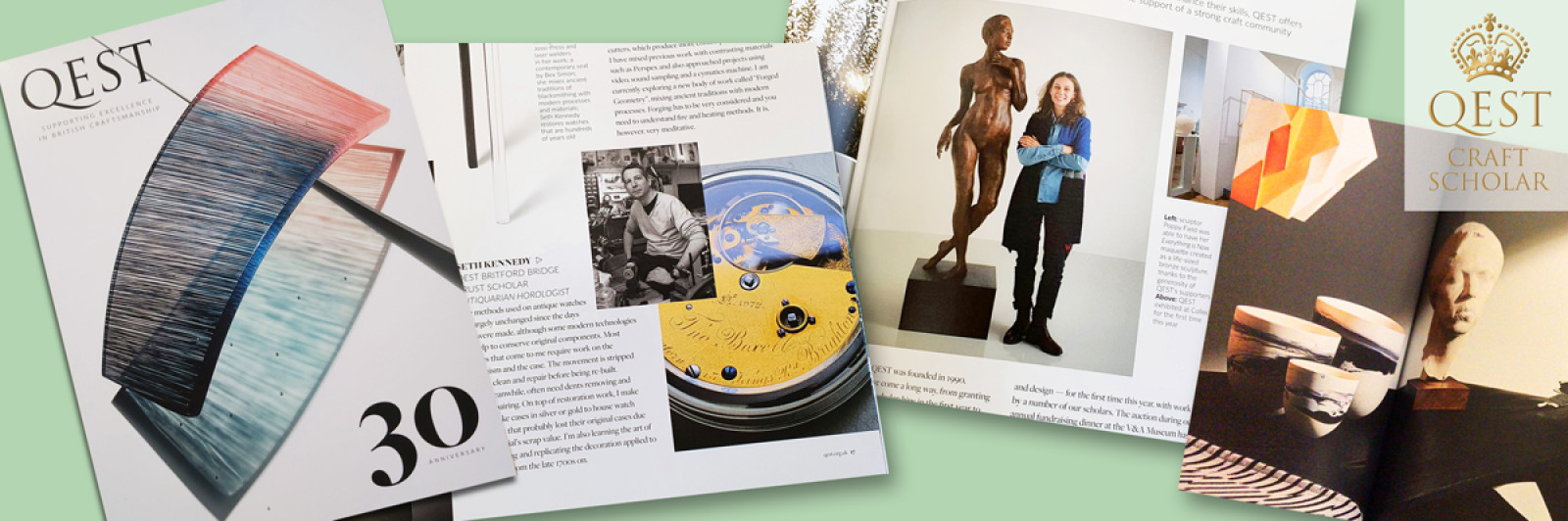 Three of our very talented craftspeople feature in the Queen Elizabeth Scholarship Trust 30th Anniversary edition magazine. Seth Kennedy - antiquarian horologist, Poppy Field - figurative sculpture and Bryony Applegate - ceramic designer. The QEST magazine celebrates 30 years of supporting traditional crafts and artists.