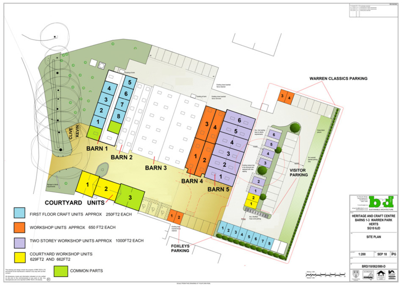 Barn 1 has up to 8 units on the 1st floor that are in modules of approximately 250 sq ft. Each unit will have outward facing windows, an industrial sink and internet access. There are no rates to pay but there will be a non-profit shared service charge for electricity, heat, light and site services. Every unit will have a free parking space.